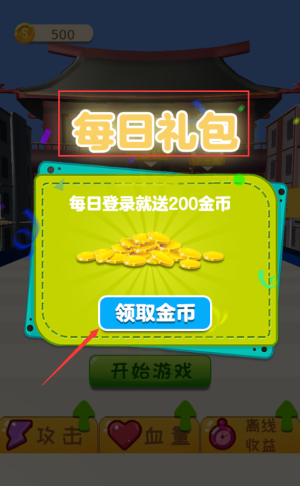 2、点击红框领取金币按钮,获取每日200金币奖励。