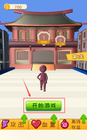 3、点击红框开始游戏按钮,进入第1关挑战。