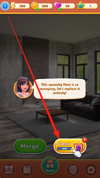 1、聆听欢快背景音乐放松心情,了解合并消除基础操作,准备开始自由闯关,自由装修。