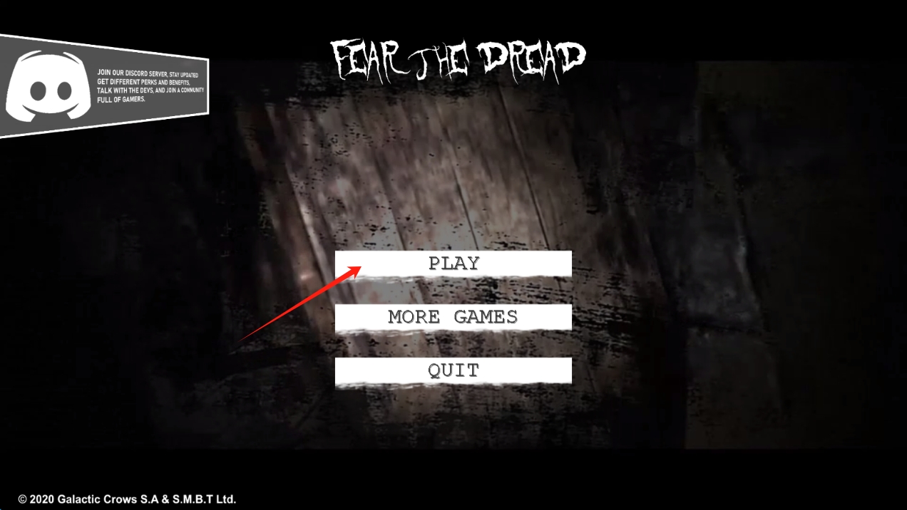 1、在Fear-the-Dread启动界面,点击PLAY,开启恐怖冒险之旅,点击进入到游戏当中。