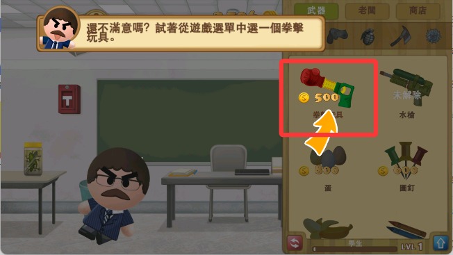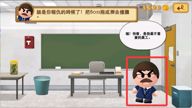 1、进入游戏后拖或摔老板去撞墙报仇。
