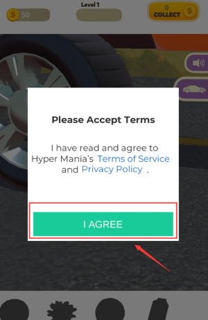 1、点击红框绿色I AGREE按钮,同意游戏服务条款。