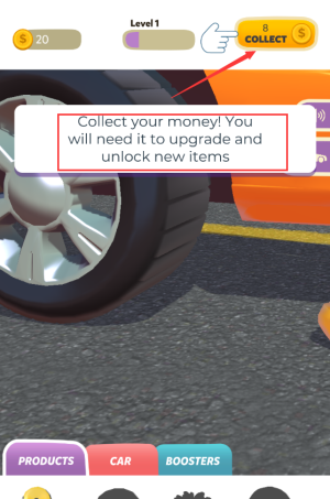 4、点击红框COLLECT按钮,收集8金币用于升级物品。