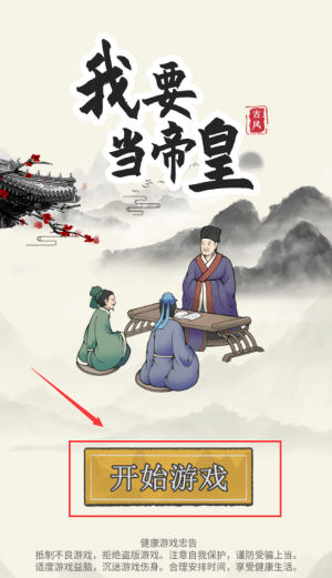 1、点击红框开始游戏按钮,进入帝皇模拟游戏。