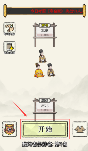 3、点击红框开始按钮,参与寒窑赋知识挑战比赛。