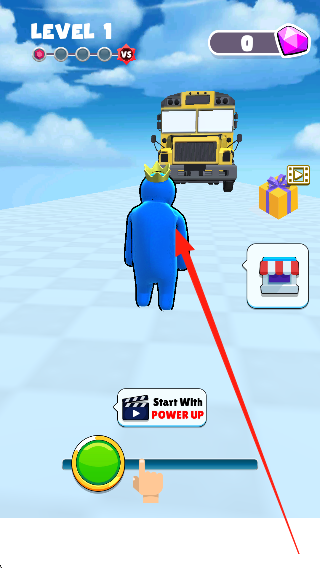 2、操控小人在跑酷中前进,随时应对出现的敌人,通过点击滑动控制大小躲避攻击,积累经验。