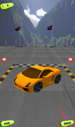 2、点击红框绿色Select按钮,选择当前黄色跑车。