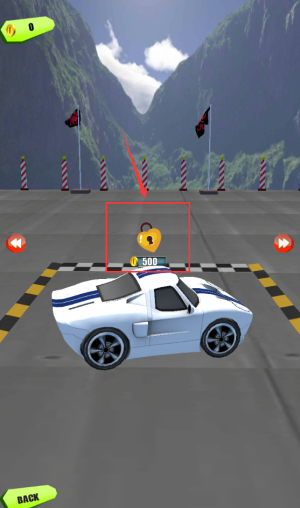 3、收集红框500金币,解锁白色蓝条纹跑车。