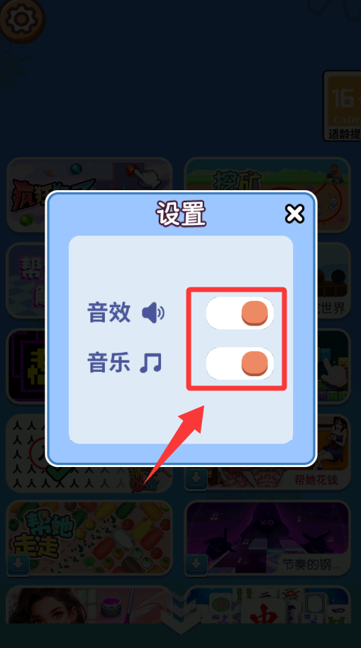 2、进入游戏先点击设置把声音都打开来体验游戏。