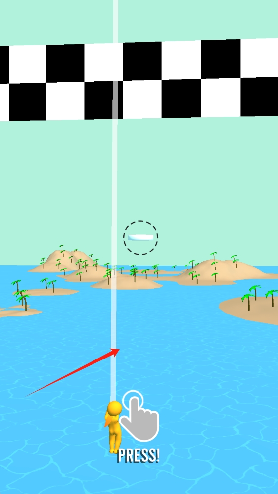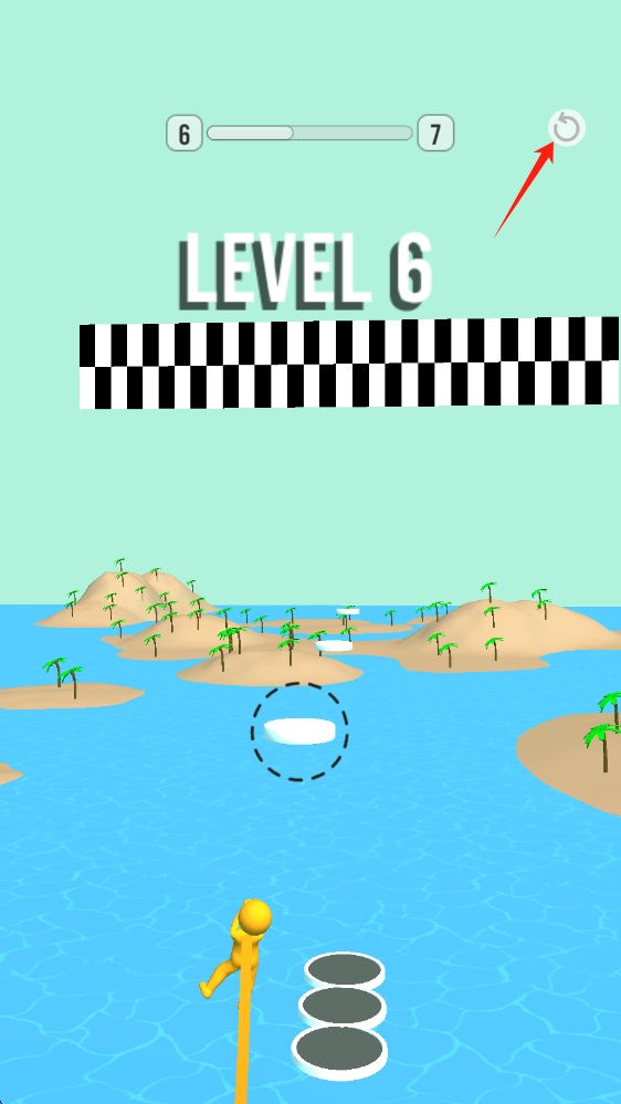 1、在游戏启动界面,点击屏幕,让角色开始跳跃冒险,朝着目标区域前进,点击开始游戏。