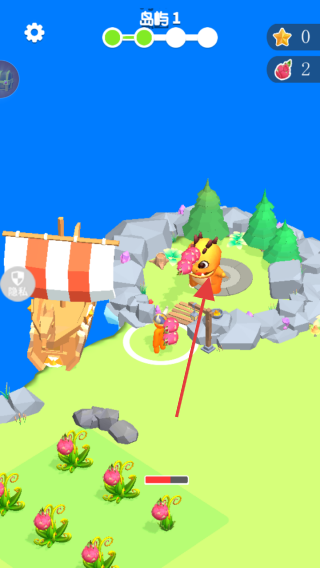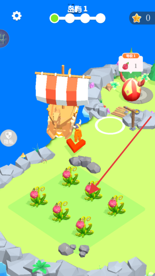 1、在游戏的岛屿1场景中,你可以看到各种植物和资源,根据提示进行操作,收集植物资源,为后续的游戏进程做准备。