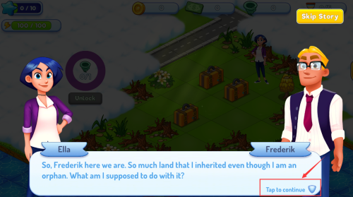 2、点击红框Tap to continue按钮,继续游戏对话剧情。