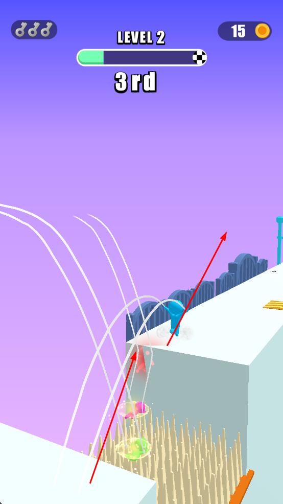 1、点击操控奔跑跳跃:通过点击屏幕控制橡皮人角色奔跑与跳跃,点击频率与力度影响角色动作,玩家需根据赛道情况灵活调整点击节奏,助力角色在赛道上保持平衡,顺利前进。
