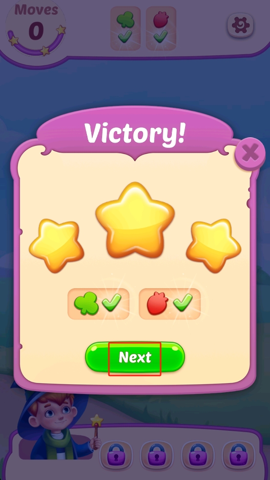3、成功达成收集目标后,点击绿色Next按钮,进入下一关挑战,积累三星通关记录,解锁更多关卡内容。
