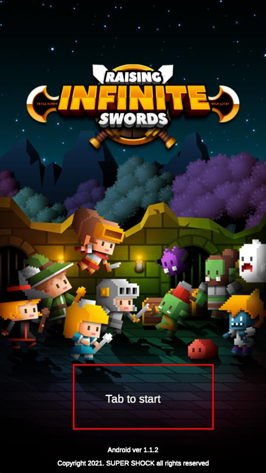 1、主界面点击红色框内Tab to start按钮,进入像素冒险世界,界面展示角色、怪物及游戏标题,正式去开启闯关流程。