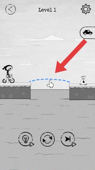 2、绘画提示引导:初始阶段有玩法提示指导如何绘画,玩家可跟随提示掌握基本方法,只要绘制的路线能够让车辆通关即可,降低了新手入门的难度。