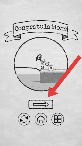 2、骑车到达终点就算完成挑战了,显示本关已通过,可点击箭头所指向的图标进入下一关。