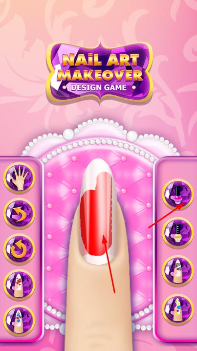 1、进入指甲涂色环节,右侧会显示不同颜色的指甲油选项,选择合适的指甲油颜色,点击后在指甲上进行涂色操作,为指甲上色。