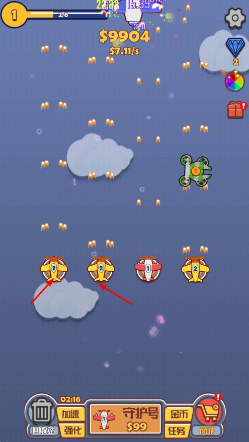 3、通关关卡解锁新的飞机种类与合成配方,搭配专属技能组合,挑战更强敌人,登上战力排行榜。