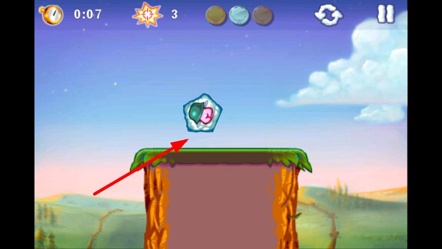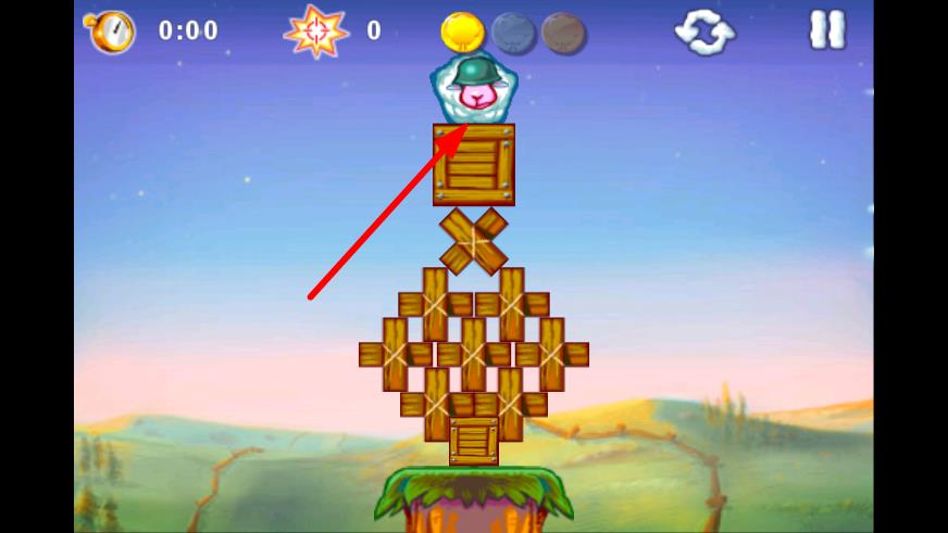 1、观察绵羊位置与狼的分布,调整发射装置的角度和力度,尝试发射道具撞击障碍物,熟悉物理碰撞效果,完成首次拯救。