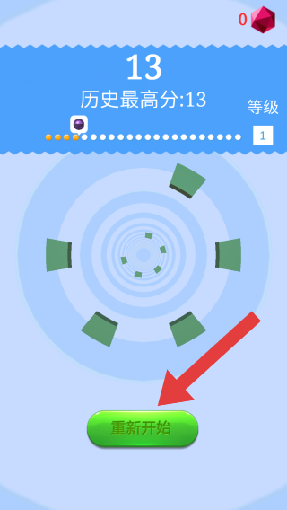 3、显示历史最高分:13,可以继续挑战高难度,也可以点击重新开始继续练习反应能力。