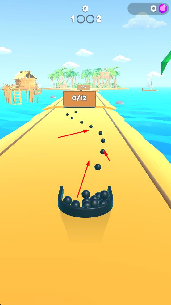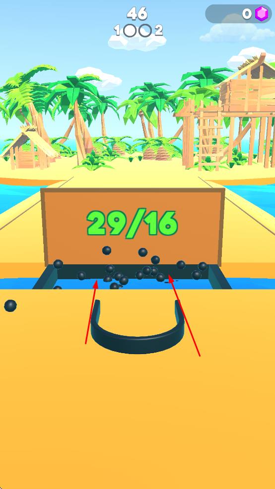 3、持续收集小球并向终点箱子推进,将小球送入箱子完成收集目标,提升上方分数。