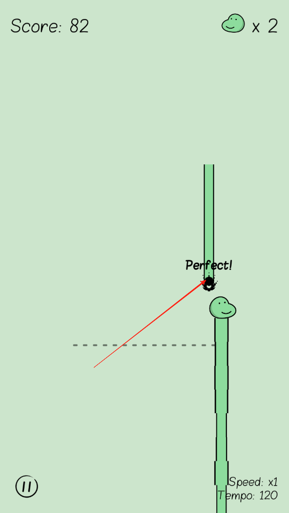 2、如果没有接住,掉落到虚线上则会扣除生命值,一关有三次失败的机会,用完后则需要重新开始。