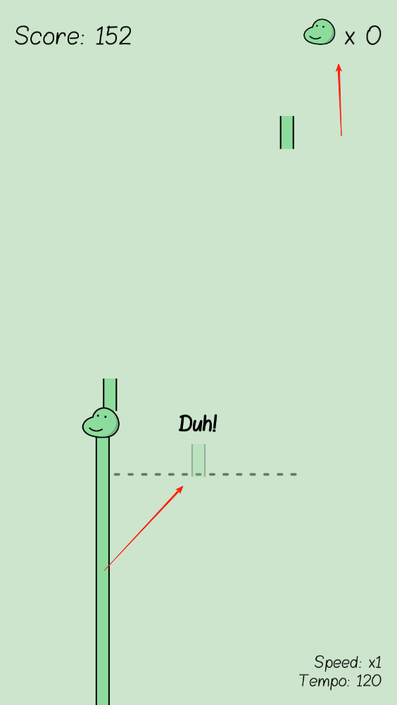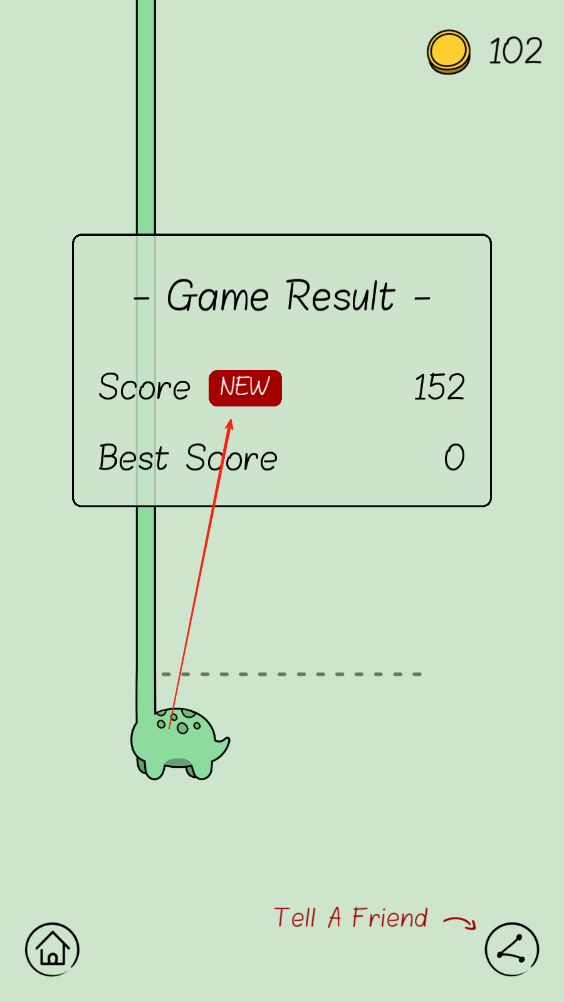 1、持续滑动屏幕操控恐龙左右移动,接住上方掉下来的脖子碎片,恐龙的脖子会逐渐变长,后续掉落的速度也会越来越快。