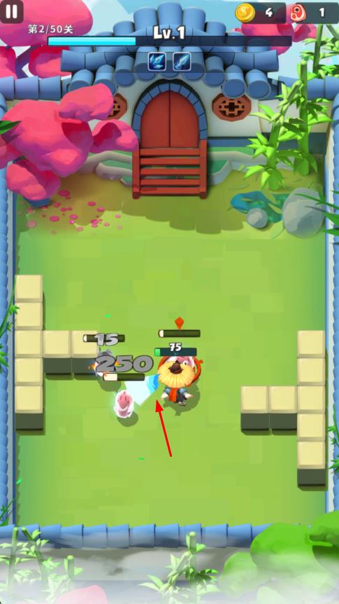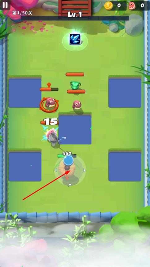 1、进入游戏后选择初始关卡,操控角色移动瞄准,点击屏幕发射子弹,消灭首个敌人开启闯关之旅。