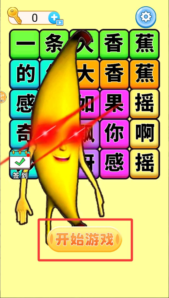 2、进入主界面后直接点击中央的"开始挑战"按钮,游戏会随机生成不同类型的网络流行梗题目。