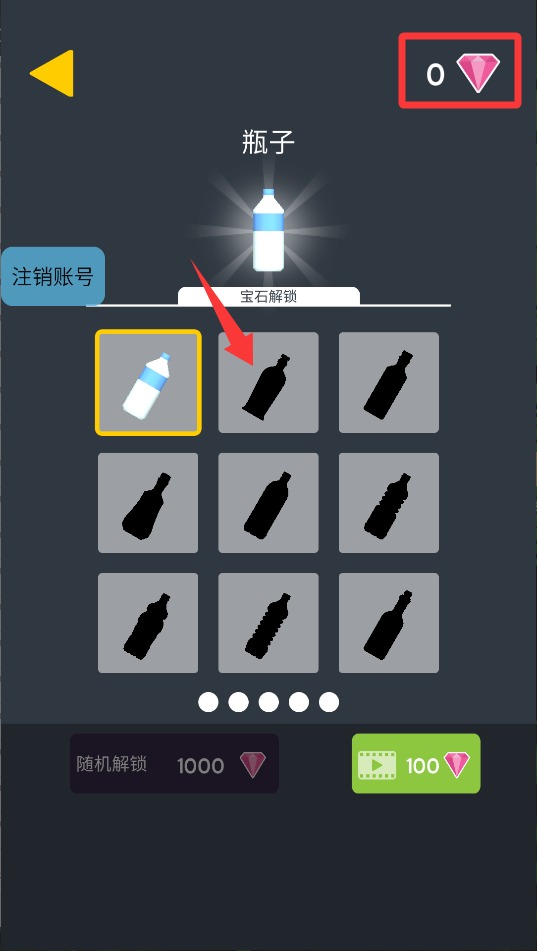 1、游戏初始界面会展示多种造型的瓶子外观,挑选喜欢的款式后确认使用,不同皮肤拥有独特的跳跃特效。