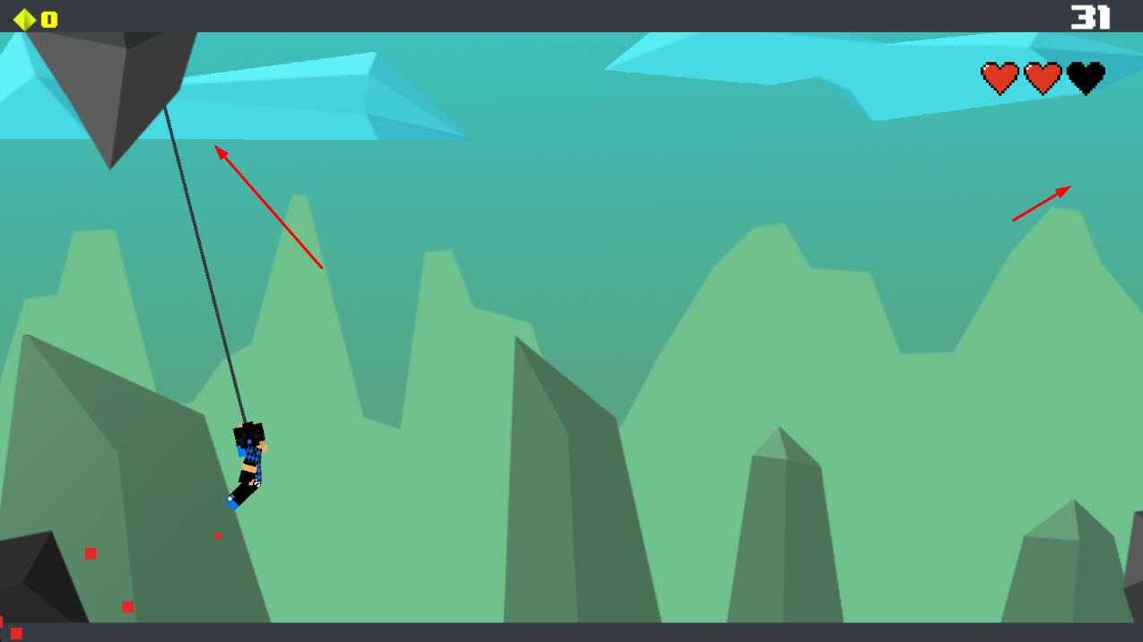 1、进入游戏后选择初始关卡,熟悉绳索的伸缩与摆动操作,尝试勾住首个平台完成跳跃,开启冒险闯关之旅。