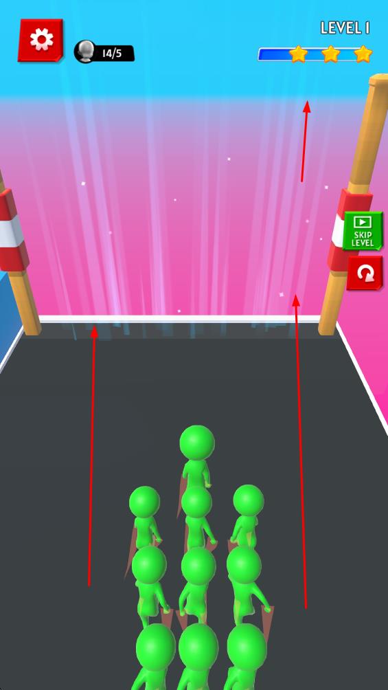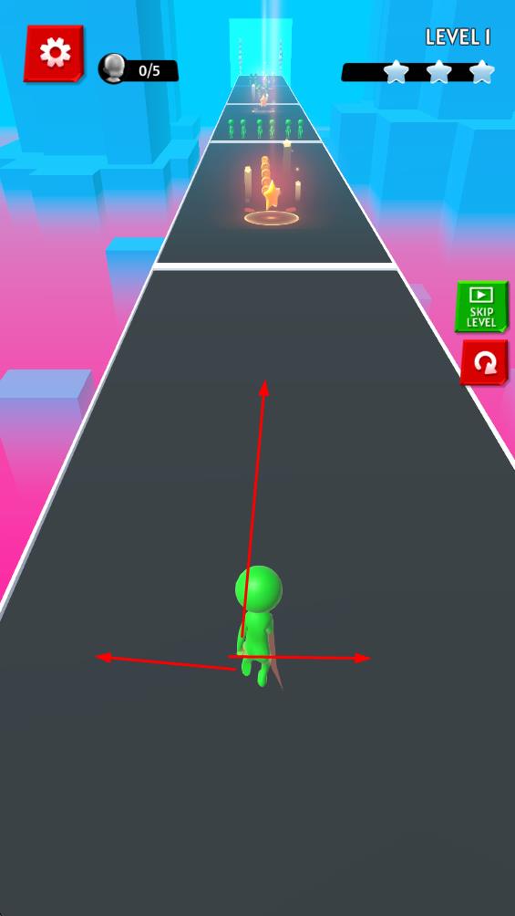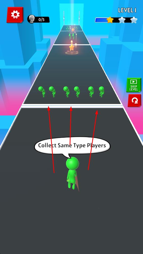 2、按照提示,靠近并收集相同类型的绿色角色,逐步壮大队伍规模,提升通关能力。