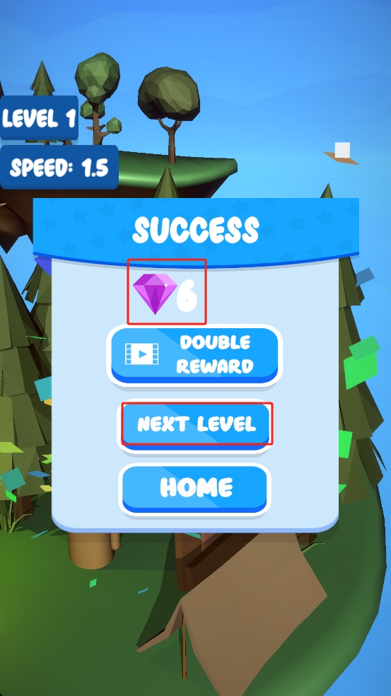 3、收集任务完成后,界面弹出SUCCESS的提示,显示获得6颗钻石,点击下方蓝色按钮即可进入后续关卡。