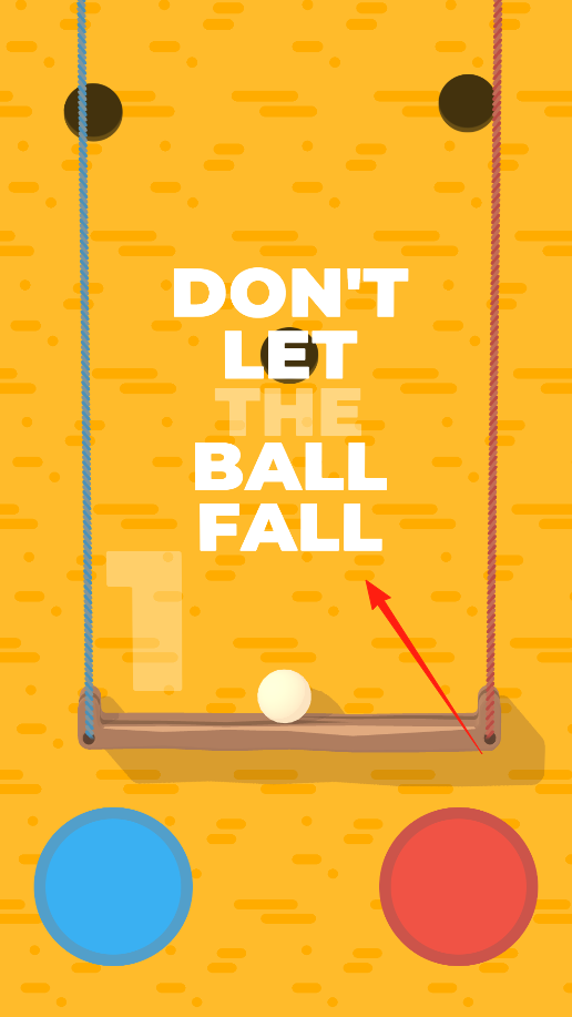 2、到第二关木板上小球位置变了,下方有蓝色和红色大圆按钮,小球滚动时根据它的移动方向,快速点对应颜色按钮,让木板倾斜把小球留在木板上,别让它掉下去。