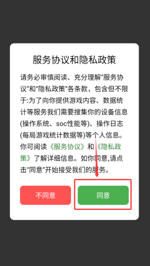 1、首次启动需仔细阅读并确认用户协议,完成授权后正式进入游戏主界面。