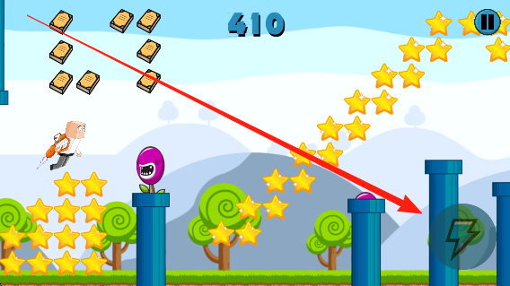 2、带领纸袋人向前推进,躲避场景中的障碍物,主动收集文件和星星,逐步提升实力,向关卡终点前进。
