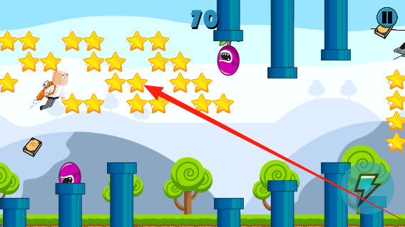 3、飞过当前关卡完成挑战,解锁新场景,继续收集更多奖励增强实力,体验持续的闯关乐趣。