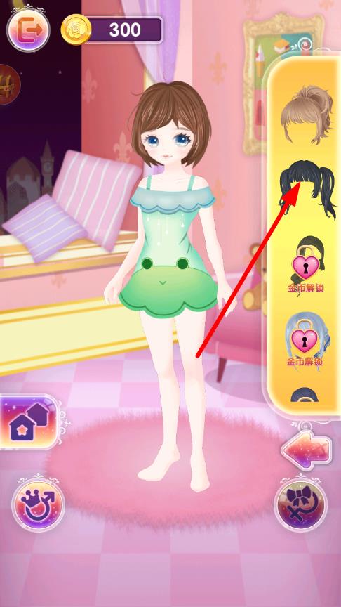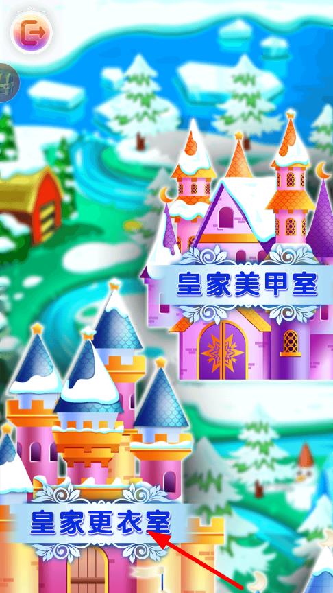 1、进入游戏后,选择爱莎公主作为装扮对象,浏览游戏提供的化妆工具与服饰道具,熟悉基础的装扮操作界面。