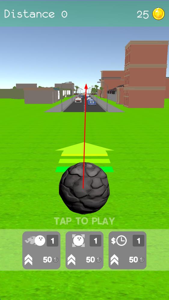 1、打开游戏后,点击主界面的PLAY进入游戏画面,操控球形巨石站在山坡顶端,向城市进行冲锋破坏这里的一切,准备开启这场毁灭之旅。