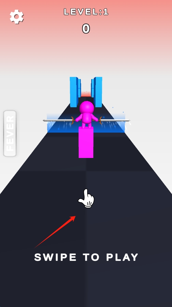 1、在游戏启动界面,按照提示滑动屏幕,让角色开始在道路上前进,开启跑酷挑战,点击开始游戏。