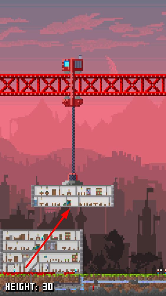 3、复古像素画风:采用经典8位像素风格,楼层、机械臂等元素线条简洁,色彩搭配明快,配合复古电子音效,还原早期小游戏的怀旧感,视觉和听觉上都带来轻松无压力的氛围。