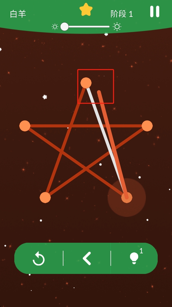 1、轮廓一笔完成:点击起始星点后,拖动手指让轨迹连接所有星点,中途不可抬笔或重复经过星点,完成后轮廓发光,判定为通关,解锁新内容。