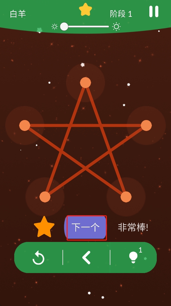 3、图形绘制完毕后,界面弹出下一个按钮,点击该按钮,可进入后续关卡,继续挑战不同形状的节点连线任务。