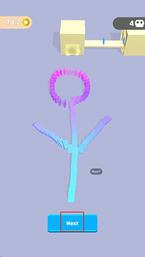 3、待方块排列成花朵状多米诺图案后,点击底部蓝色Next按钮,开启下一关的复杂图案搭建挑战。