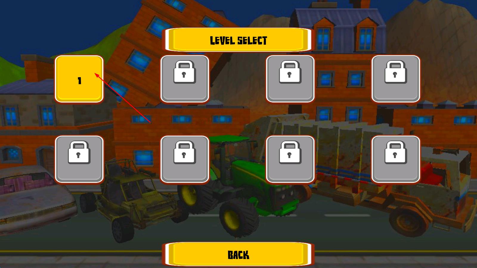 3、当成功完成当前关卡要求的破坏数量,即可解锁下一关,面对更具挑战性的小镇布局,继续驾驶越野车释放压力,享受闯关的成就感。