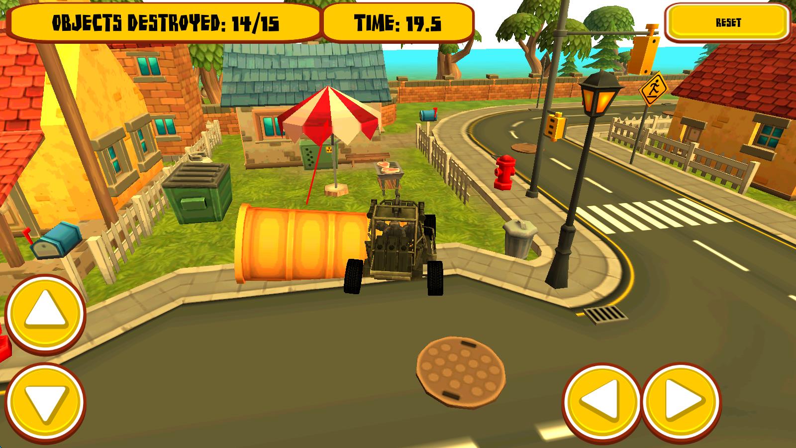 2、随着关卡深入,需要破坏的建筑数量逐渐增多,驾驶越野车在小镇中灵活穿梭,精准撞击目标建筑,积累破坏成果,向更高关卡迈进。