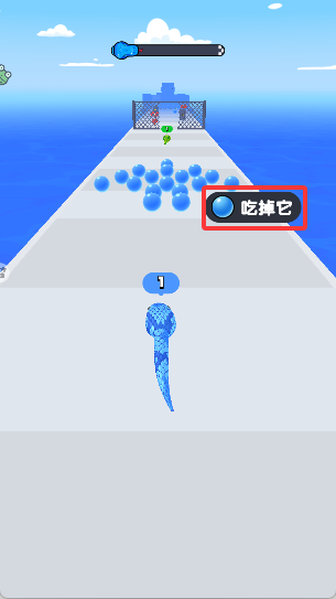 3、吃掉赛道上的蓝色小球,增加蛇的长度。