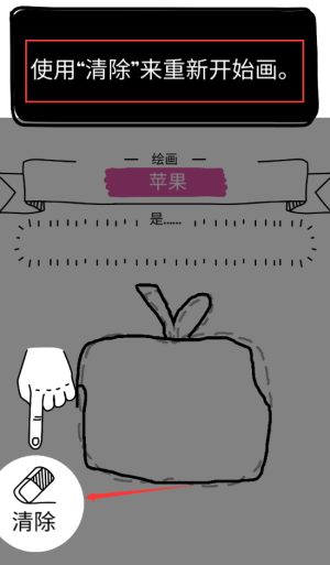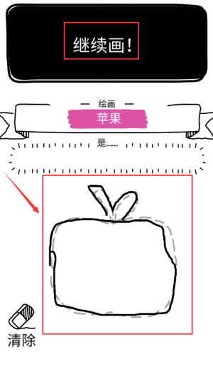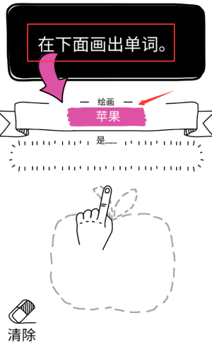 1、点击红框苹果文字,在虚线框内绘制苹果图案。