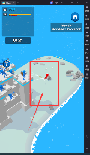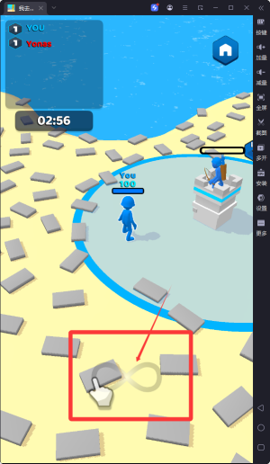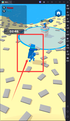 1、玩家通过滑动屏幕控制角色移动收集砖块,点击放置砖块来建造和升级城堡防御工事,操作简单易上手。